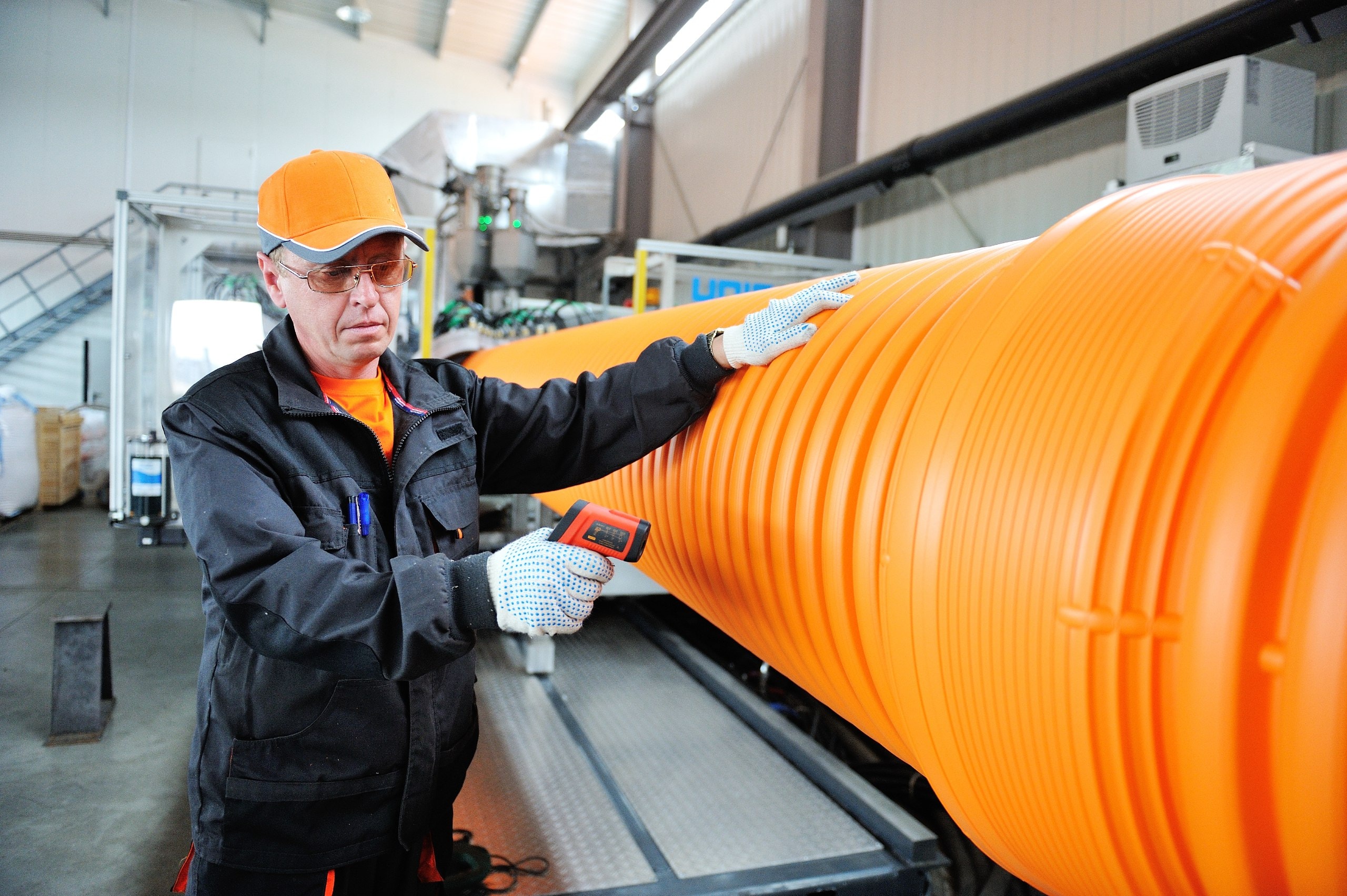 After a detailed analysis of equipment suppliers' offers, we decided to opt for modern Battenfeld-Cincinnati Solex series extruders instead of KraussMaffei, a horizontal Unicor corrugator instead of a vertical Corma, and an IPM cut-off device instead of Sica. Much attention was paid to the automation of production, which allowed minimizing the share of manual labor. The new production laboratory was equipped with ZwickRoell testing equipment.